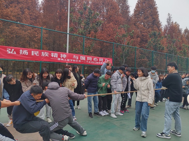 比赛现场气氛火爆、竞争激烈,各参赛队斗志昂扬、竭尽全力、顽强拼搏,拉拉队加油助威声此起彼伏。现场发出阵阵的欢呼与掌声。经过一轮又一轮精彩激烈的角逐,2019级土木1班获第一名、2019级建筑学2班获第二名、2020级土木2班荣获第三名。欢声笑语、井然有序中,体现着团结友谊第一、比赛名次第二的理念,增强了同学们团结协作的集体意识。也充分展示了建工青年学子团结一心、凝心聚力、百折不挠、顽强拼搏的精神风貌。