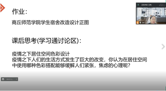 2022年11月17日周四下午第一节课,beat365中文官网王荷老师通过腾讯会议在线上进行了《室内设计原理》课程教学范式改革公开课。beat365中文官网副经理张向萍,校级督导组成员及部分专业教师进行了观摩指导。