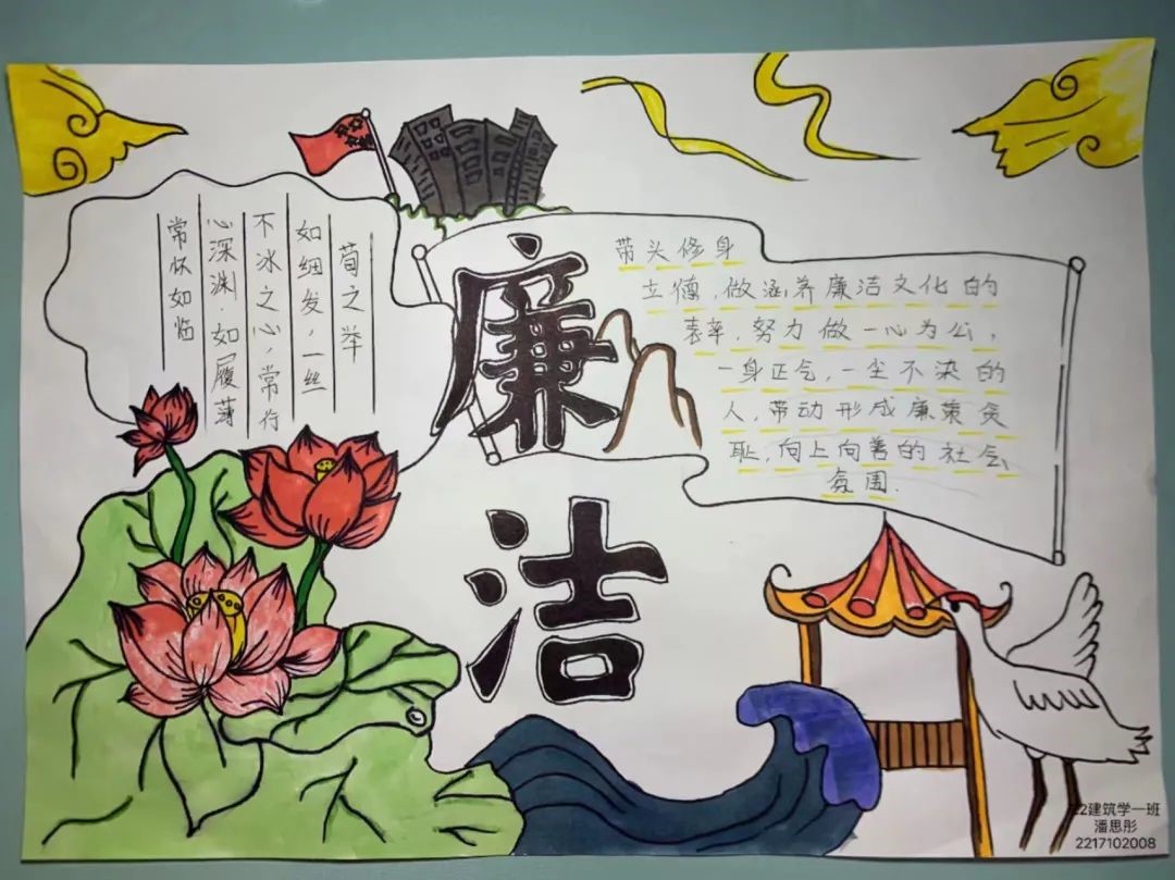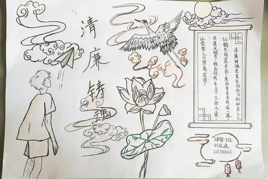 “粉身碎骨浑不怕,要留清白在人间”。同学们的作品切实展现了清廉的重要特性,是一种清清白白的行为和光明磊落的态度。通过本次活动,同学们认识到廉洁是老员工采纳阳光、驱散黑暗的道德所向,也是老员工在复杂的社会环境中保持道德人格的关键,对同学们的成长具有重要里程碑作用。