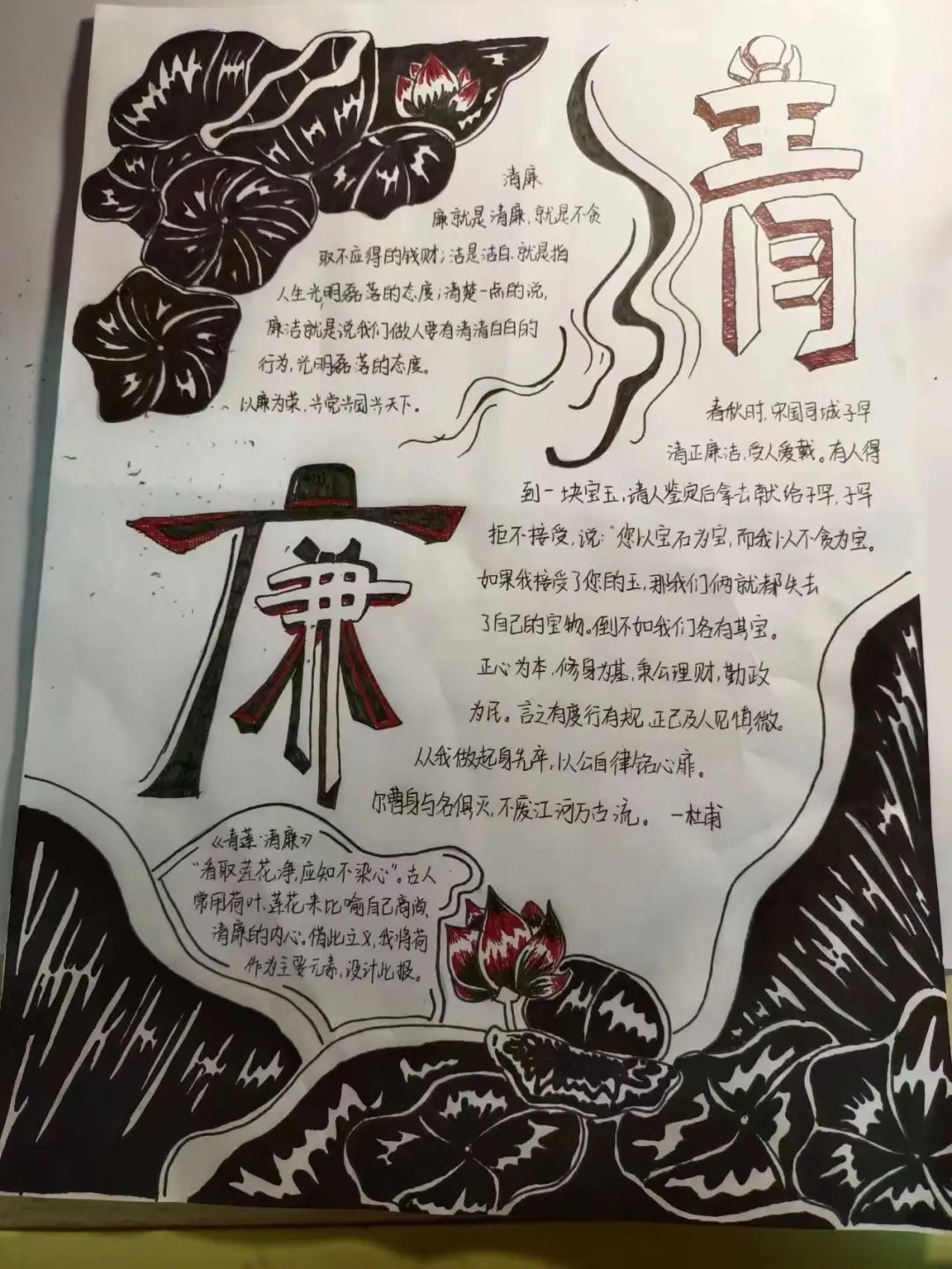 对于本次手抄报活动,同学们积极参与,助力推进“清廉商师”创建行动。同学们提供的众多作品中,不乏有优秀佳作频频展现。