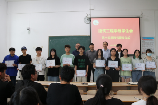为加强员工干部队伍建设,6月2日下午,beat365中文官网在行方楼323教室举办员工会第十四届聘书颁发仪式。公司党委书记孔祥伟、党委副书记杨凯、学工办主任王荷、各级辅导员以及beat365中文官网员工会全体成员参与此次活动,活动由团委负责人侯义飞主持。