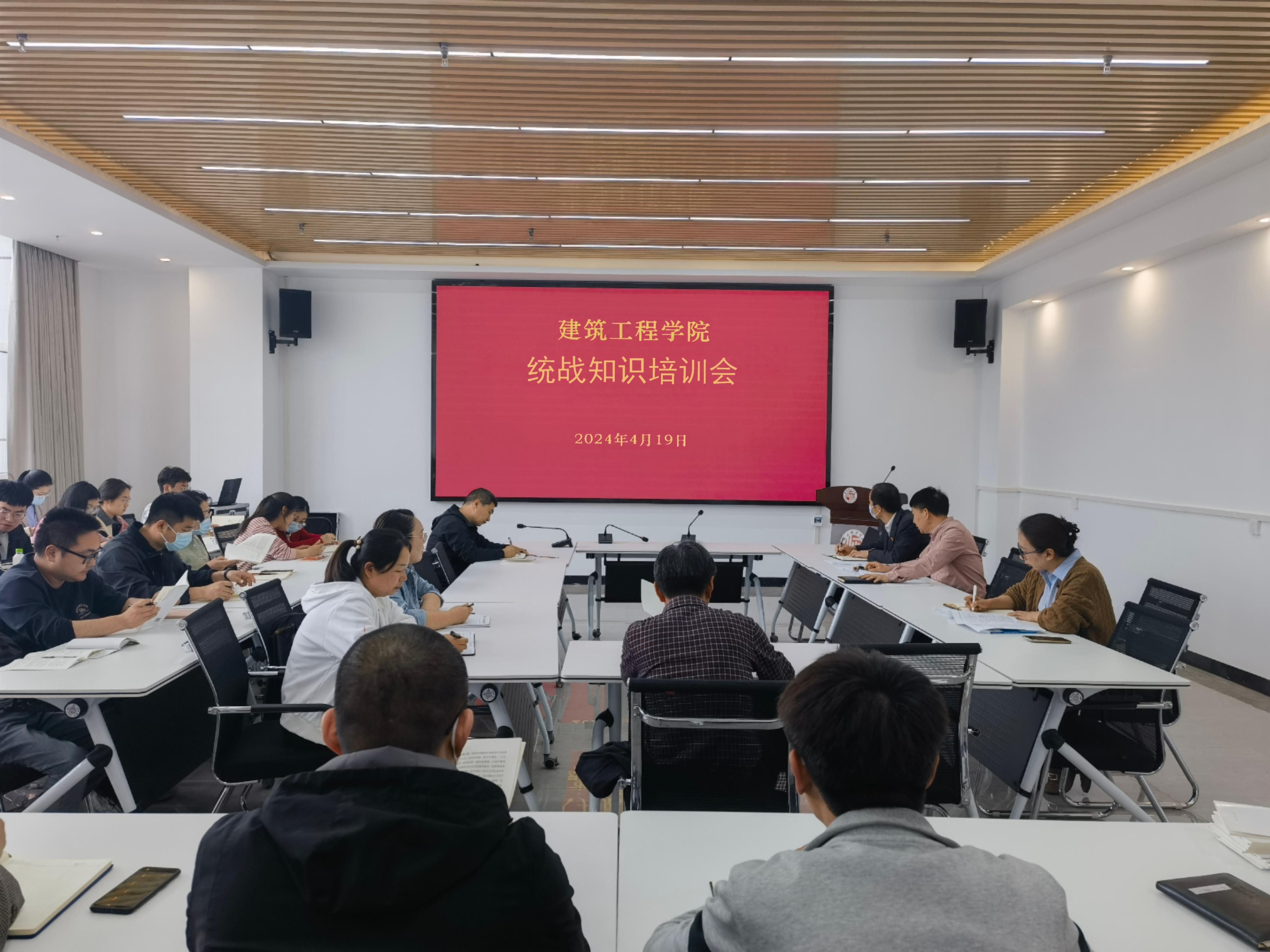 2024年4月19日,beat365中文官网在工科实训中心会议室开展统战知识专题培训会,全体教师参加,会议由党委书记孔祥伟主持,统战委员张向萍做知识培训。