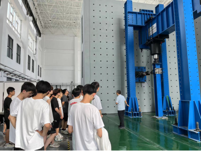高永辉在结构大厅向同学们介绍新型建筑材料及其应用;在结构模型室,向同学们介绍节点模型构造,帮助员工认识并了解模型名称及构造原理;介绍框架结构体系梁柱基本构造原理,帮助大家建立建筑结构体系的认知,简单了解梁柱基本结构体系的内容;在建筑材料实验室,向同学们介绍各种建筑材料的检测检验仪器,帮助大家简单了解建筑材料的基本性能及检验方法。